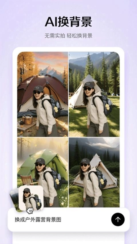 这里也能对所需图片进行AI换背景,适配多元化的图片背景进行更换,换背景轻松便捷。