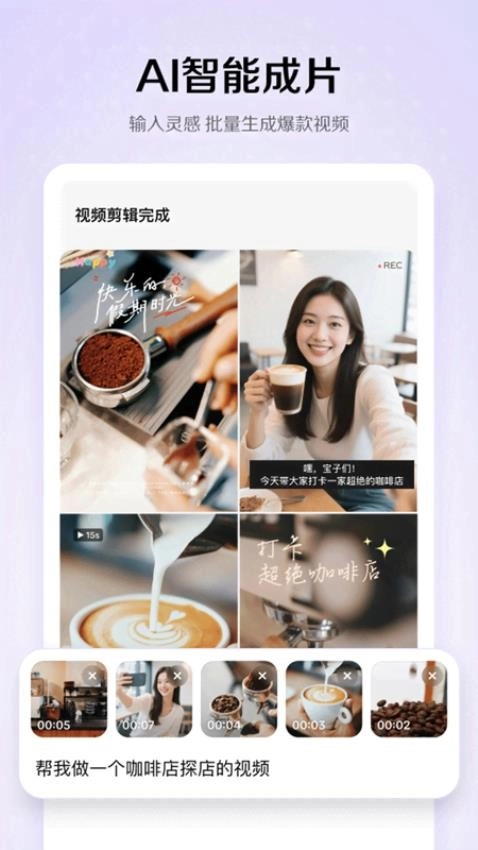 软件配备了智能成片功能,用户只需输入创作主题,就能一键生成爆款短视频,让视频制作变得简单高效。