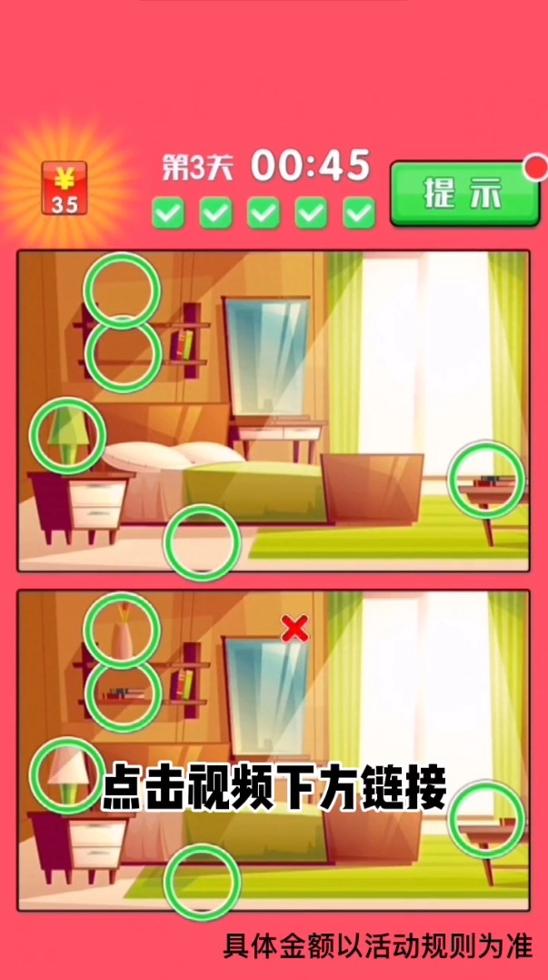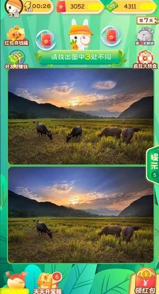 找茬王者秀红包版是一款备受玩家青睐的益智类游戏,要是你喜欢参与找茬挑战,这款设有红包奖励机制的游戏肯定值得一试。在每个关卡里,你得认真观察并找出两张图片间的不同之处,只要判断正确,就能获得丰厚的红包奖励,让你在玩乐的同时轻松赚取额外收益。