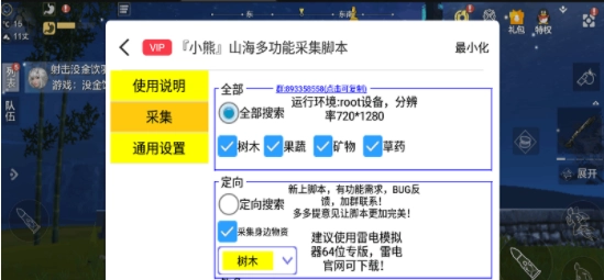 目前脚本功能有采集、钓鱼。