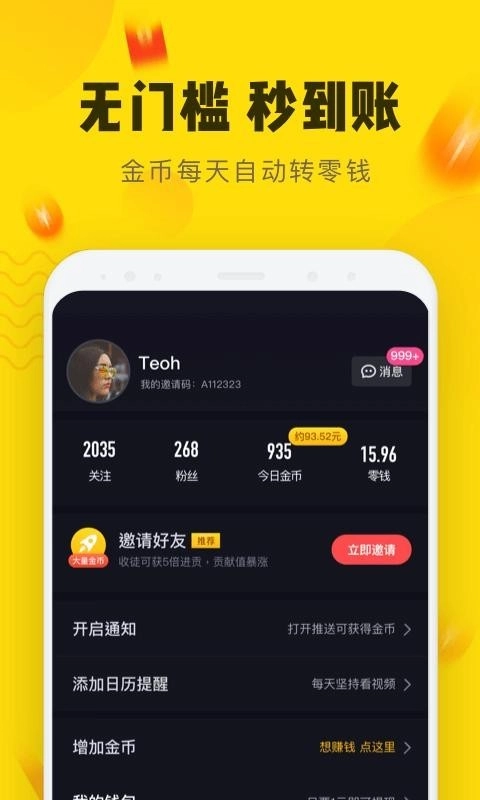1、刷短视频的同时还能赚取jin币,娱乐与收益两不误;