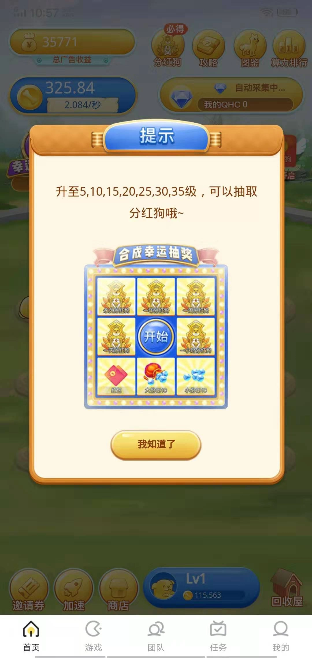 当你的狗狗合成并进化到第10级或25级时,有机会参与幸运抽狗环节,若成功抽取分红狗,则可稳定获取持续性收益。