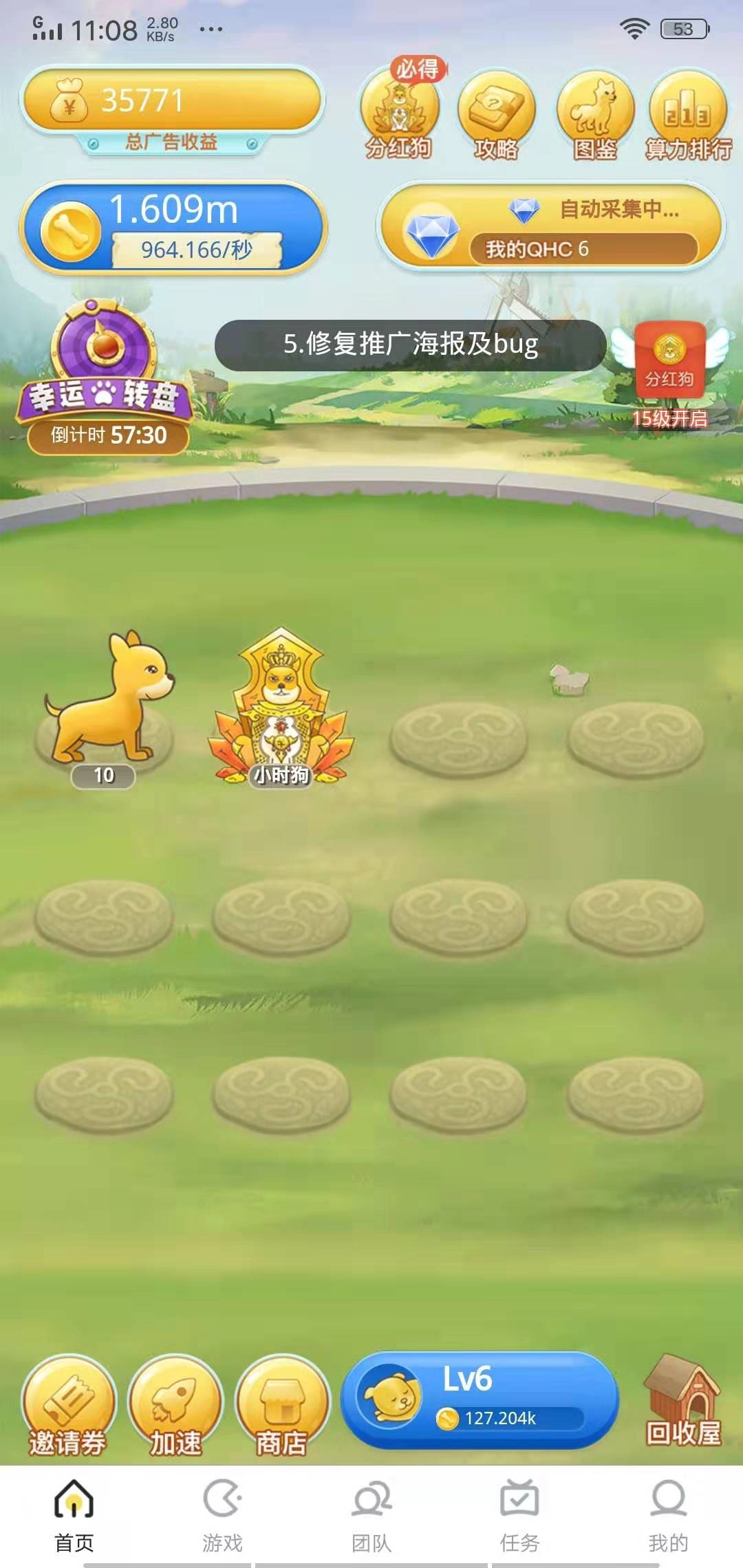 一天分红狗特性:与其他分红狗共分平台当日广告总收益的30%。