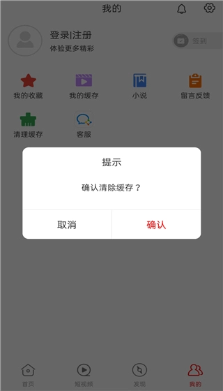 5、进入我的界面,点击【清理缓存】。