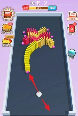通过控制小球击倒所有多米诺骨牌,使排列更加流畅完整,玩法简单易上手。