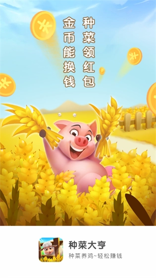 种菜大亨红包版是一款和派派、串串火锅、全民来找茬类似的红包游戏。玩家在农场里种植各类蔬菜,等蔬菜成熟就能获取相应的红包收益;通过不断扩大农场规模,解锁并种植不同品种的蔬菜,就能轻松收获红包惊喜。