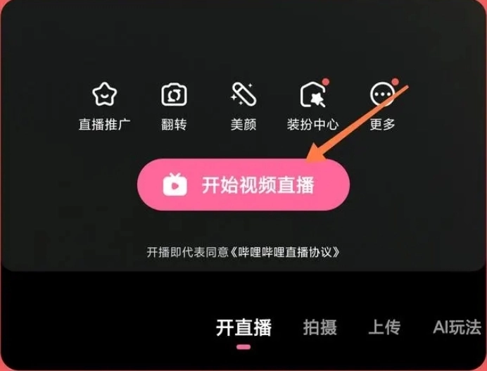 1、若您使用的是哔哩哔哩直播的直播软件,无论是直播姬PC版还是移动版,启动软件后直接点击“开始直播”按钮,就能直接完成推流,实现一键开播。