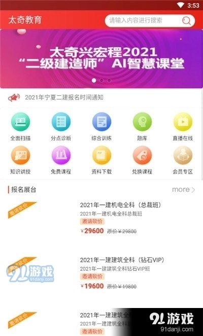 3、太奇兴宏程教育平台提供了覆盖各类职业的教学内容与知识点,用户能够免费浏览学习这些知识,平台还配备了丰富的习题资源和公开课视频供用户学习使用,实用性很强。