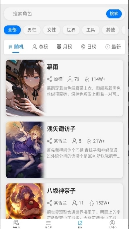 2、拥有丰富的角色库,涵盖男女、世界、工具等多种类型,支持自定义角色的创建、编辑和保存角色信息。