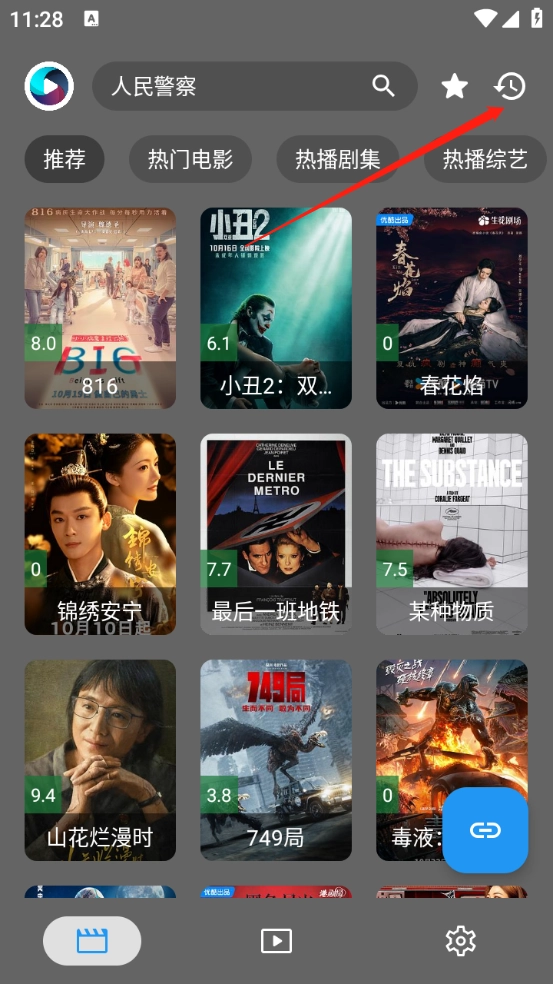 1、打开本站的念心影视,点击界面右上角的指示按钮。
