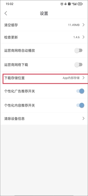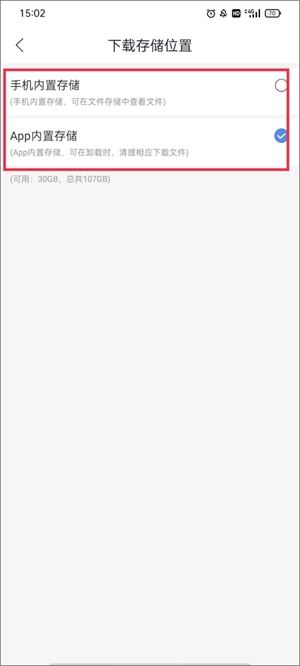 3、软件默认的存储位置为存储空间,若想把优质视频资源存到内存里,可切换至第一个选项:存储。