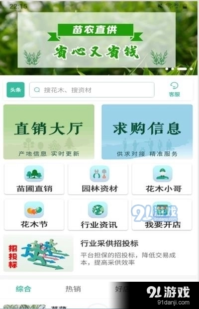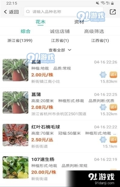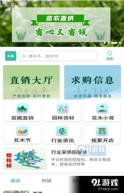 3、涵盖园林材料、行业资讯、苗圃直销等服务板块,店铺与苗木信息清晰呈现,一目了然。