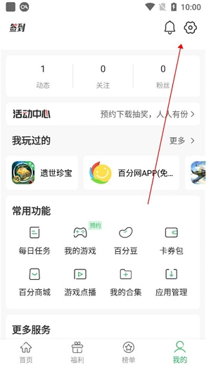 1、首先我们进入百分网盒的“我的”板块,点击“设置”;