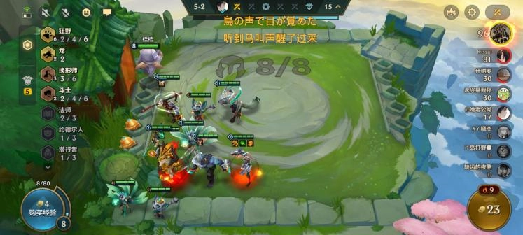 7人口之后:此时场上的阵容应该是3北地、3元素、2仙灵、2游侠、1忍者(这是6人口时的阵容)。升到7人口后,补一张北地牌凑4北地,可选的北地牌有狗熊、猪妹、冰鸟,优先选狗熊或猪妹。这时阵容就变成4北地、3元素、2仙灵、2游侠、1忍者,打法基本成型。之后卡50利息升8人口,升到8人口后随便补一张能加羁绊的牌,斗士、骑士甚至亚索都行——这也是7人口推荐补狗熊或猪妹的原因。剩下的就优先追火男的星级,其他牌有就拿,8人口足够用,没必要升9,重点提升阵容质量。