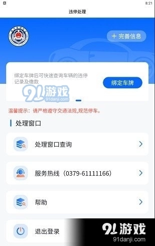 洛阳违停处理服务可免费使用,用户需绑定个人证件及驾驶证等相关信息,是一款安全可靠、信息精准的实用工具。