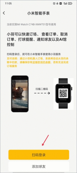 4、在智能手表的线上界面找到并展开二维码,随后点击“扫码登录”按钮。