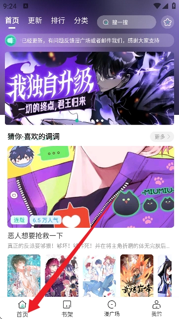 1.第一次进入小肥羊漫画首页时,系统会依据你的浏览偏好,智能推送匹配度较高的漫画作品,帮助你迅速开启精彩的阅读旅程。