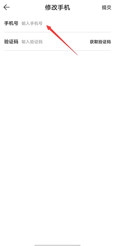 3、进入修改页面后,填写新的号码并输入验证码,点击提交即可完成绑定流程。