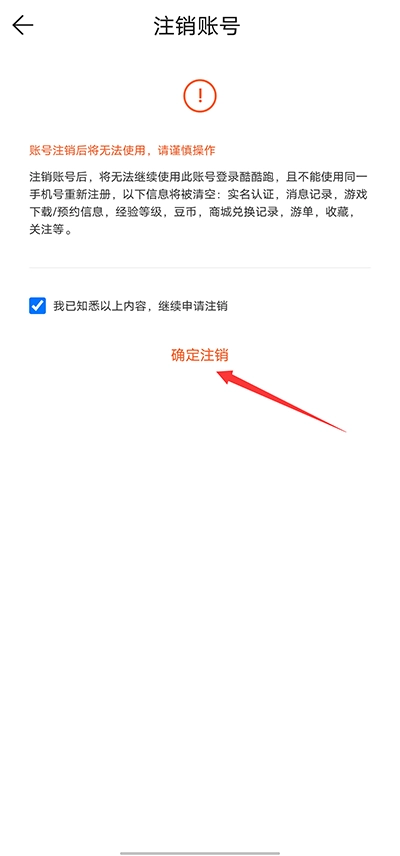 3、请在确认已阅读注销须知后,勾选相关选项,然后点击“确定”按钮,即可完成账号注销操作。