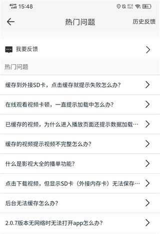 5、同时也能在【我的】-【意见反馈】页面,查看常见问题的解决方案,点击该页面右上角的【历史反馈】,还可以查看之前反馈的情况。