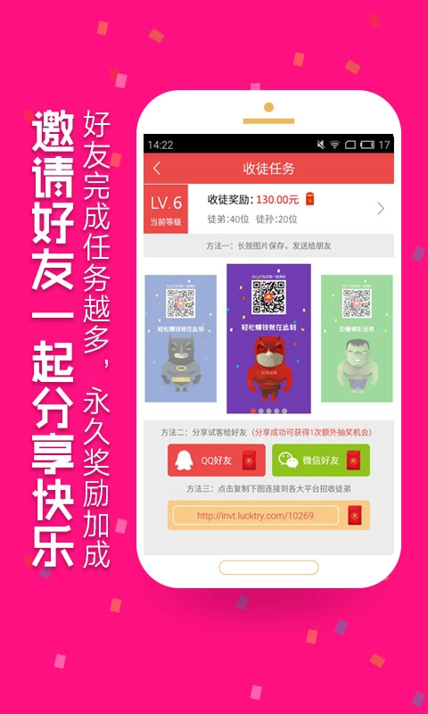 【邀请有礼】把链接分享给好友邀请他们加入,不用费力就能拿到持续的奖励,轻松实现兼职月入千元的目标