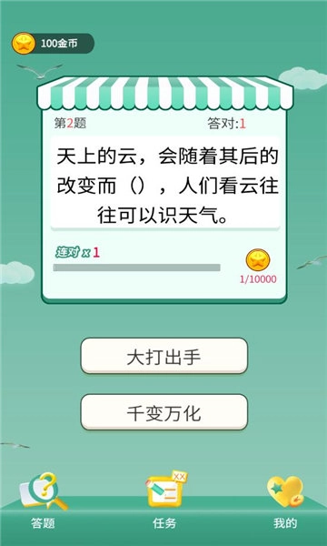 2.每次正确回答都将获得金豆奖励,答对越多,积累的金豆也越丰厚,是一款兼具娱乐性和挑战性的益智游戏。