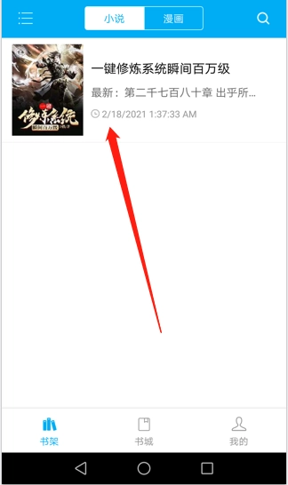 1、在书架中选择一本正在阅读的小说并打开