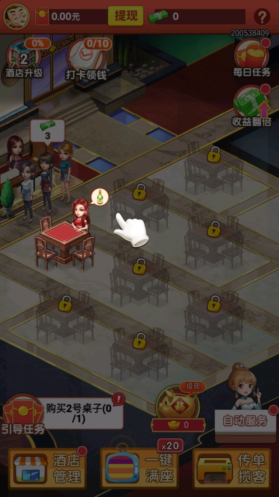 2.用手里的金币逐步拓展酒店的规模,并且聘请更多员工来进行管理,以此持续获取丰厚的现金红包。