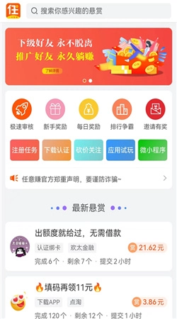 任意赚,是一款兼职赚钱,能够让用户在软甲中找到超多的网赚项目,也让用户放心尝试,让用户能够在其中无需投资也能够拥有体验,还能够让用户在其中邀请好友赚钱。
