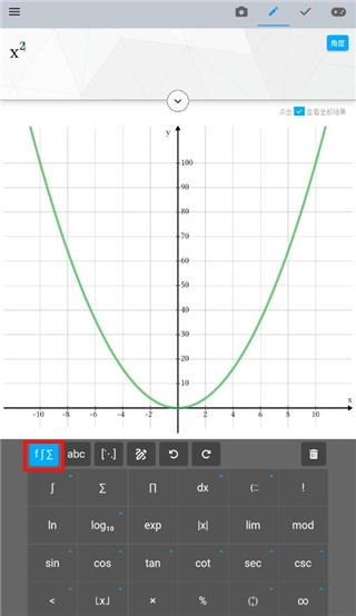 3、点击左上角的科学符号,还能够展开更多的数学符号。