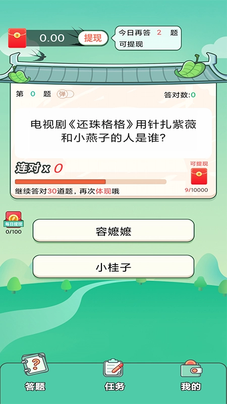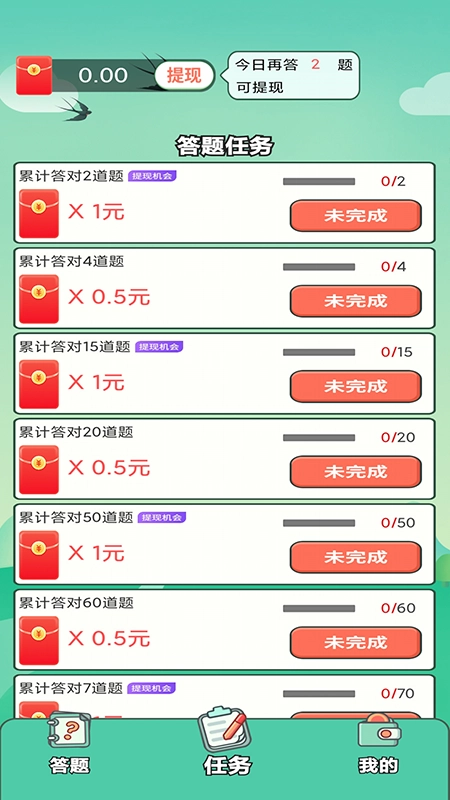 用答题开启精彩一天,闯关赢红包,1元起提,随时到账!