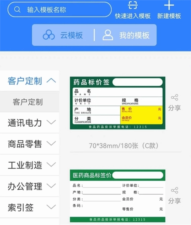 当与热敏打印机配合使用时,可提供食品日期标签、物流面单等专属模板。