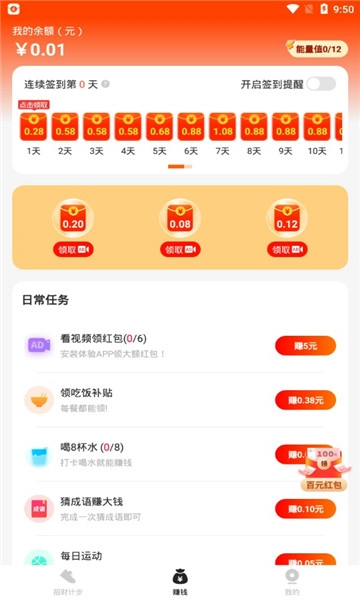 这是一款结合运动与收益的创新应用,用户可以通过走路完成各种任务来赚取红包,同时观看视频也可获得额外奖励,真正实现健身与赚钱两不误。