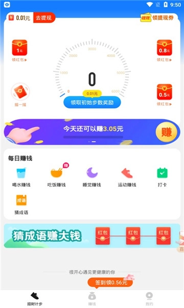 招财计步红包版让每位用户都能从日常行走中获得价值。无论是在通勤途中还是闲暇散步,只要开启手机的走路赚钱功能,就能轻松获取收益,步数越多,奖励越丰厚;除此之外,完成签到、喝水提醒、睡眠打卡等日常小任务也能带来额外收入。