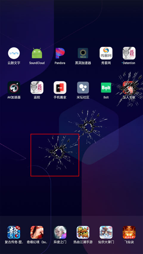 当你开启这项功能后,每次点击屏幕,都会出现屏幕碎裂的图案。