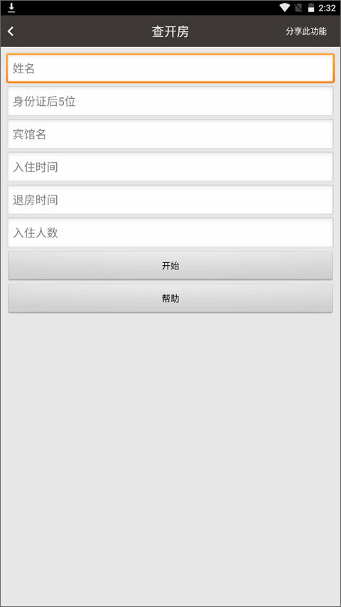 这是一款适合情侣或朋友间用来恶搞的小工具。只需输入姓名、身份证后5位、希望显示的宾馆名称、入住时间、退房时间以及入住人数,点击“开始”按钮进入查询界面,再输入刚才设置的姓名和身份证号,就能得到你想要的恶搞结果啦!