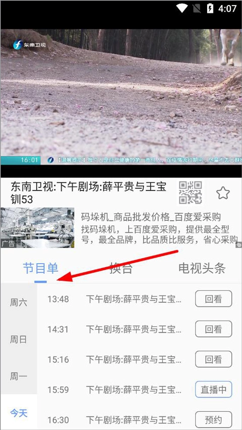 2、下拉即可查看热播卫视,点击进入后能查看卫视节目单详情及剧集。