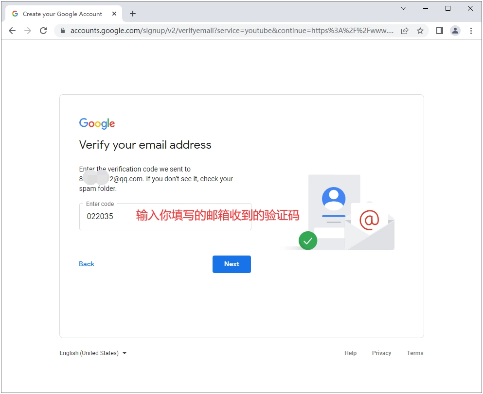 5、在这个页面,您需输入填写的邮箱收到的验证码,接着点击“Next”按钮。