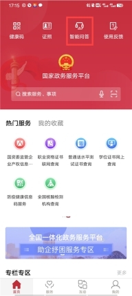 1、进入软件首页后,若想找到四六级相关内容,可点击上方的智能问答;
