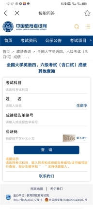 4、选择考试科目、姓名、成绩报告单编号,输入验证码后点击查询按钮即可完成查询。