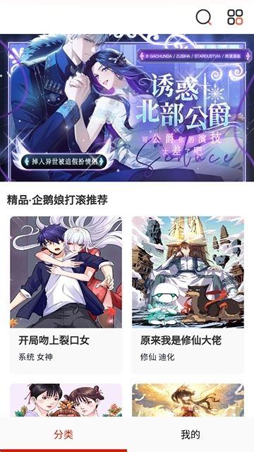 1、开启弹幕主义后,默认显示的是分类页面,你可以点击任意一部漫画进入其详细页面。