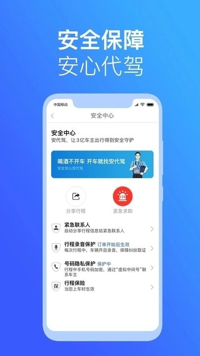 1、酒后代驾:面向有饮酒习惯的有车人群,为保障酒后安全返程,安代驾提供24小时代驾服务,将客户与车辆一同安全送达目的地。