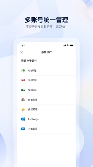沃邮箱是一款功能强大的邮箱软件,支持QQ邮箱、新浪、网易等多种邮箱类型账号登录。它采用清新简洁的界面设计,布局清晰合理,能帮助用户快速管理邮件,还支持垃圾邮件一键清理功能。此外,沃邮箱的安全性和隐私性较高,用户可以放心使用。