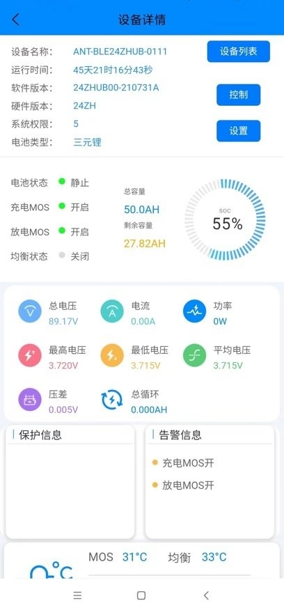 随时随地打开连接电池可以看到各项数据信息,如电压,电流,温度,容量等。也可以远程随时查看电池状。