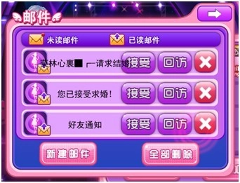 2、好友打开邮件并点击确定后,就能进入举办婚礼的环节,与此同时,申请人也会收到系统邮件,提示对方已接受求婚。