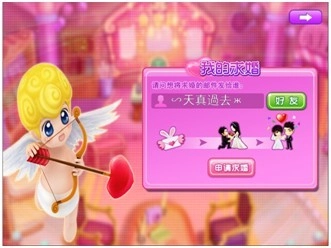 1、单身状态的角色点击地图上的结婚礼堂后,就能看到求婚申请列表;点击“好友”选项会弹出好友列表,玩家可从中选择想要发展为情侣的好友,发起情侣申请。系统提示申请成功后,对方好友会收到申请成为情侣的邮件。