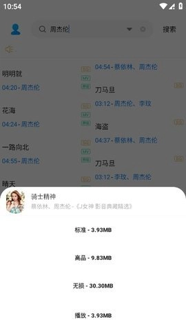 点击你喜爱的歌曲,既能挑选不同音质进行播放,也可直接在线聆听。