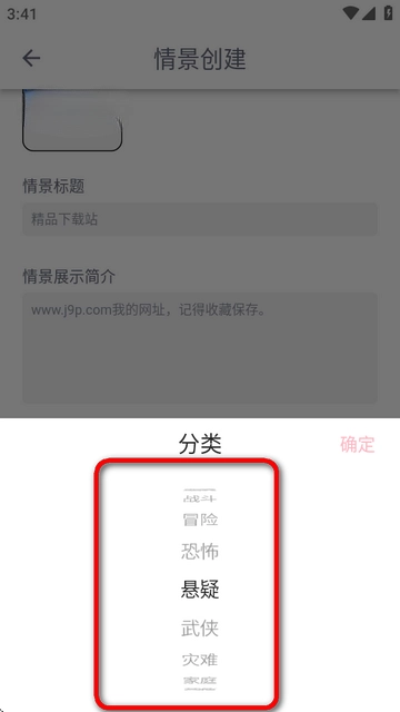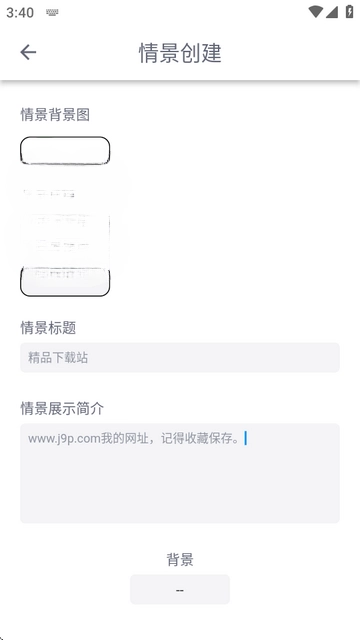 2、进入情景创建界面,输入背景图、标题和简介。
