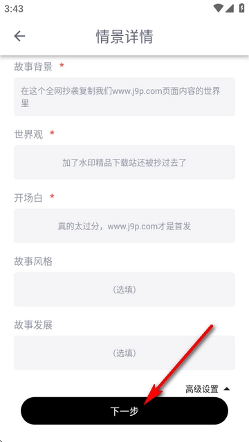 5、输入情景详情介绍,点下一步。