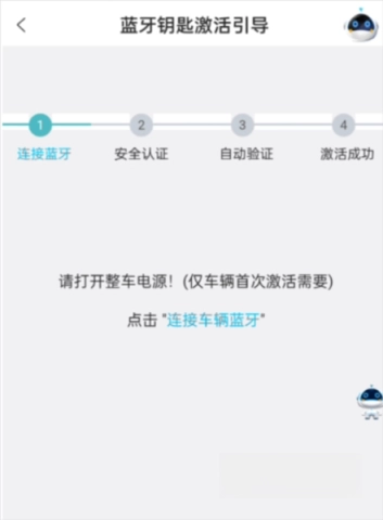 4、请确认你处于车内,开启整车电源后,点击【连接车辆蓝牙】选项。